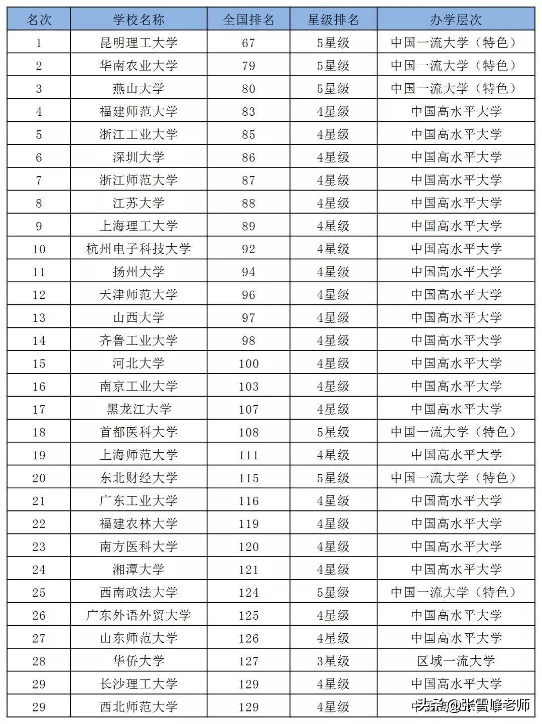 昆明理工大学、华南农业大学、燕山大学、首都医科大学、东北财经大学荣膺5星级大学,此前为4星级。
