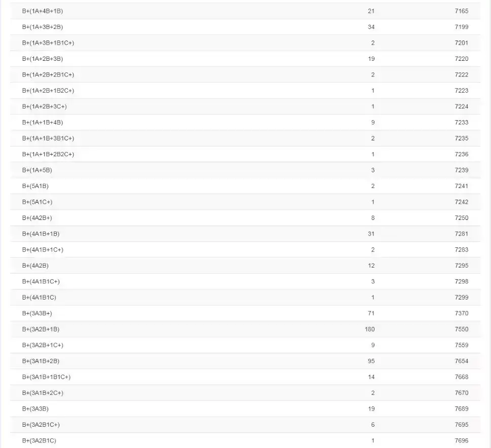 今年蒲庙二中全A+有1人,总分A+有22人。