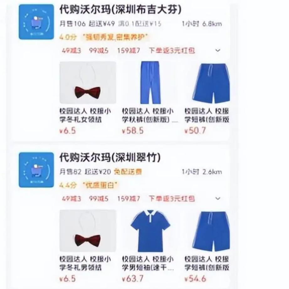 而且深圳统一款校服也公开销售,当地的人可以在外卖平台上购买到校服,因为校服是给学生穿的,面料好、比较舒适,也受到大家的欢迎。