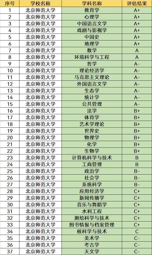 其中有6个一级学科获评为A+,分别是教育学、心理学、中国语言文学、戏剧与影视学、中国史、地理学。