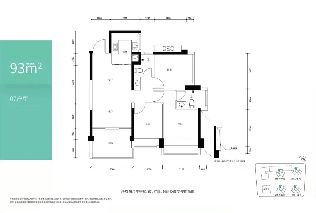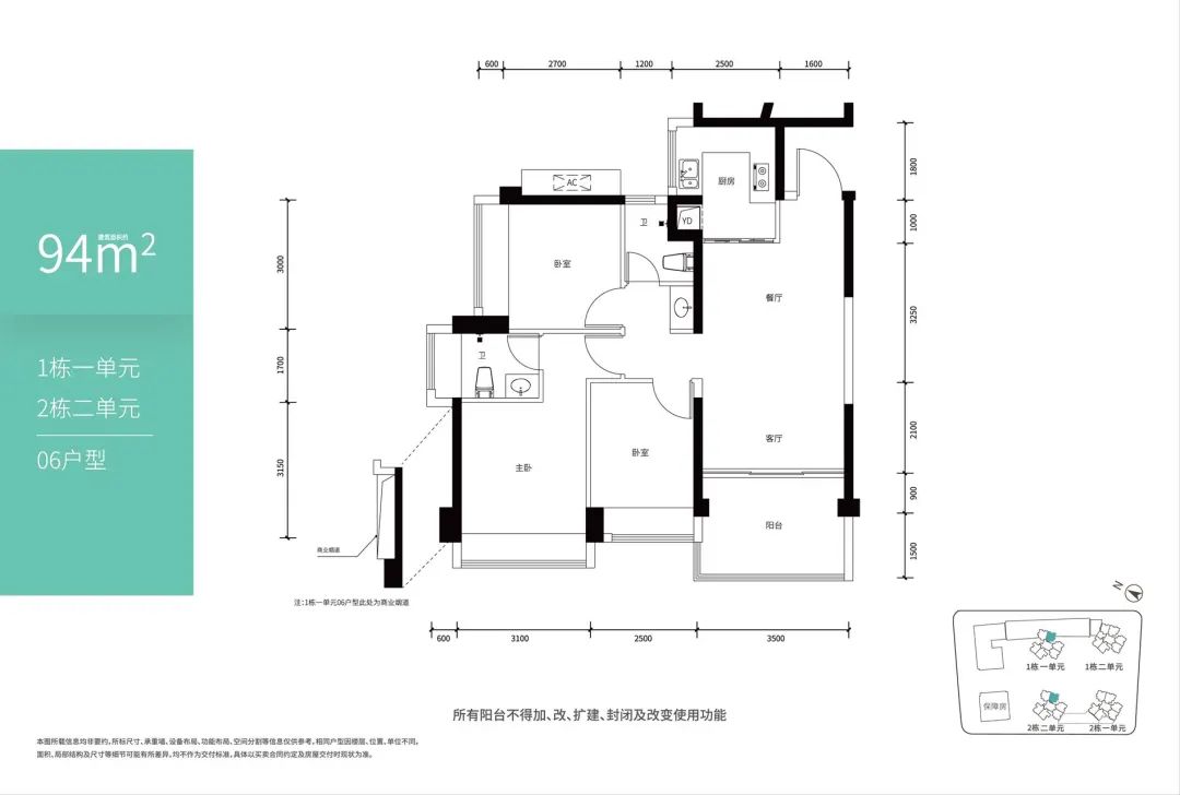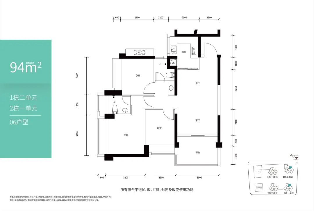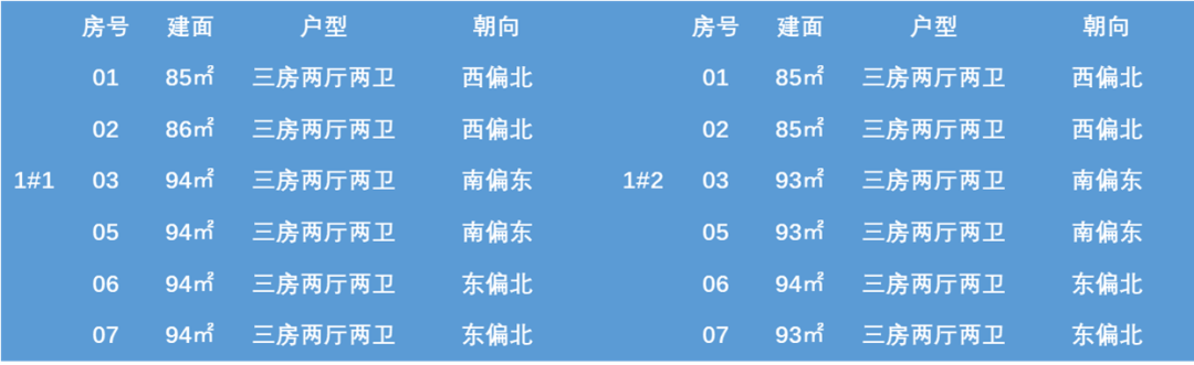 户型朝向上,只有朝南偏东一点点的03和05户型算真正的优势朝向,其次06和07户型朝东偏北一点点也还不错,这四个户型都是93㎡-94㎡的三房两卫,这也就意味着会面临总价优势和朝向优势必须二选一的情况,具体情况如下: