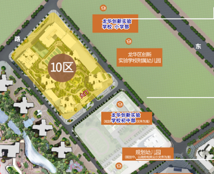 根据龙华区教育局2021年度秋季招生学区划分,10区地块小学在龙华区创新实验学校(小学部)学区范围内;初中对口学校在龙华区创新实验学校(初中部)学区范围内。