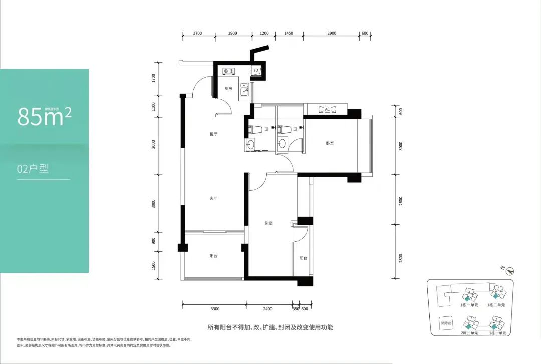 85㎡2+1房2卫单价区间:6.5-7.1万/㎡