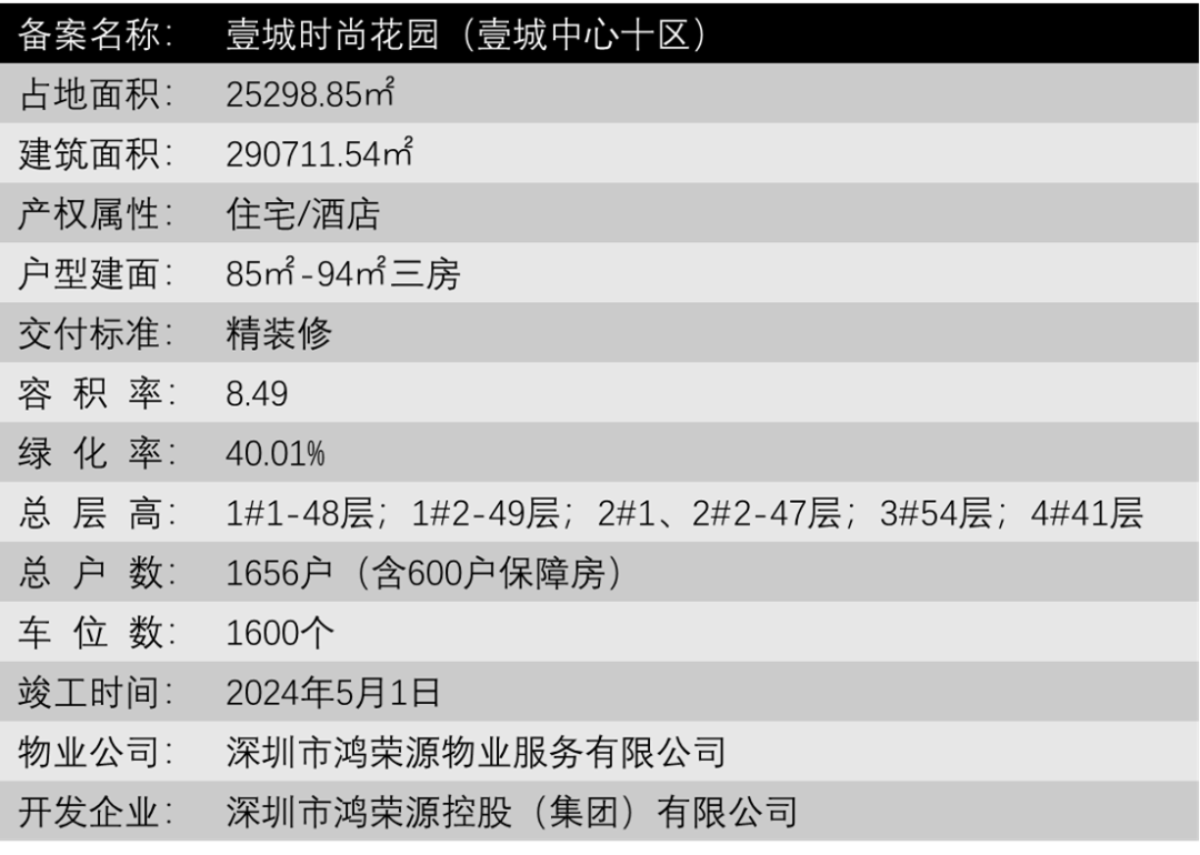 《壹城时尚花园》即“壹城中心十区”项目位于龙华区龙华街道景龙社区景龙建设路与建通楼交汇处南侧,地块原为“深圳北商务中心大二期城市更新单元项目的其中一部分”。
