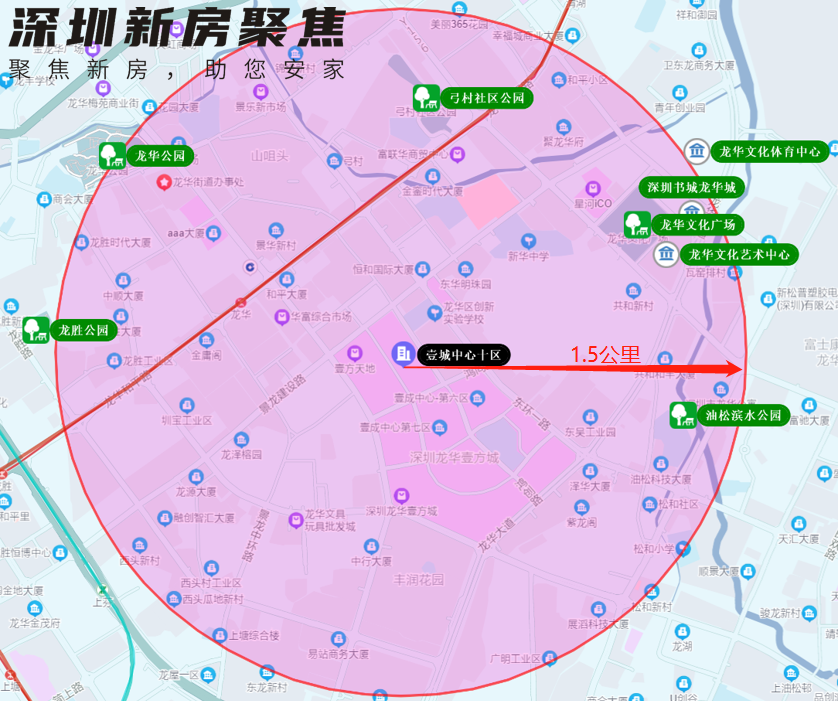 项目距离龙华文化广场周边系列文体配套步行约1.5-2公里;距离龙华公园步行约1.5公里