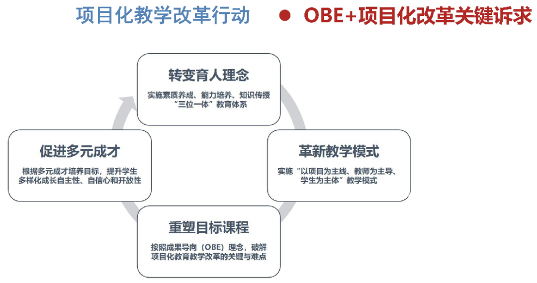 这也是为什么学校把本轮改革定义为“成果导向(OBE)+项目化”教育教学改革的原因。
