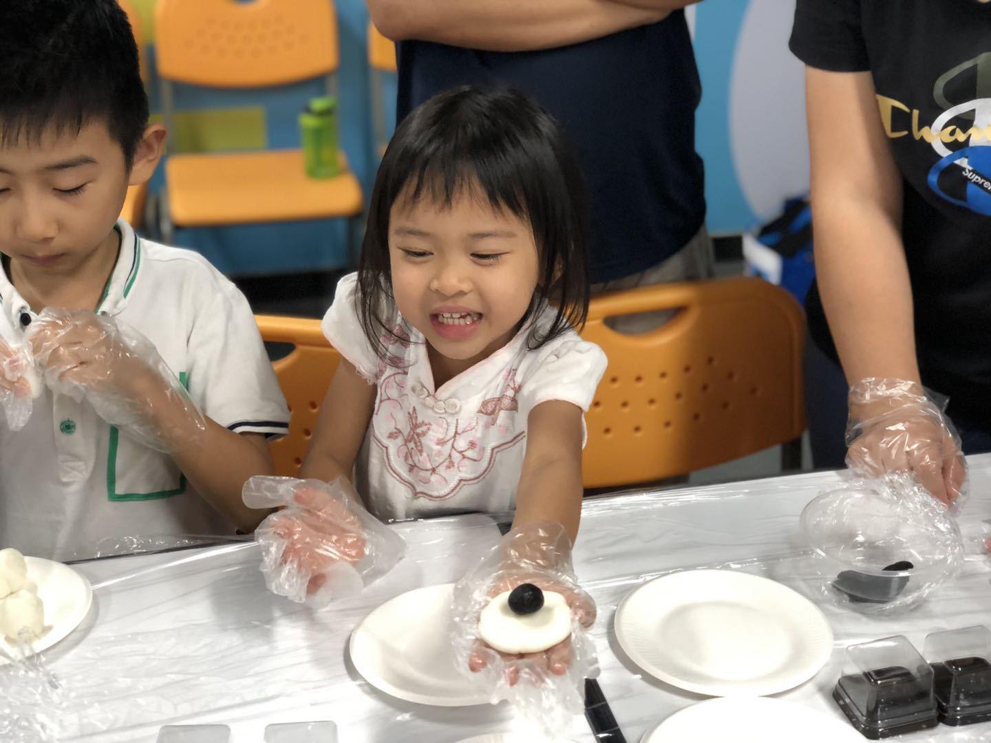 在紧张刺激的游戏环节之后,孩子与家长一起开始亲手制作中秋月饼。老师先为家长与孩子演示了一遍月饼制作的操作过程,并耐心讲解需要注意的细节。