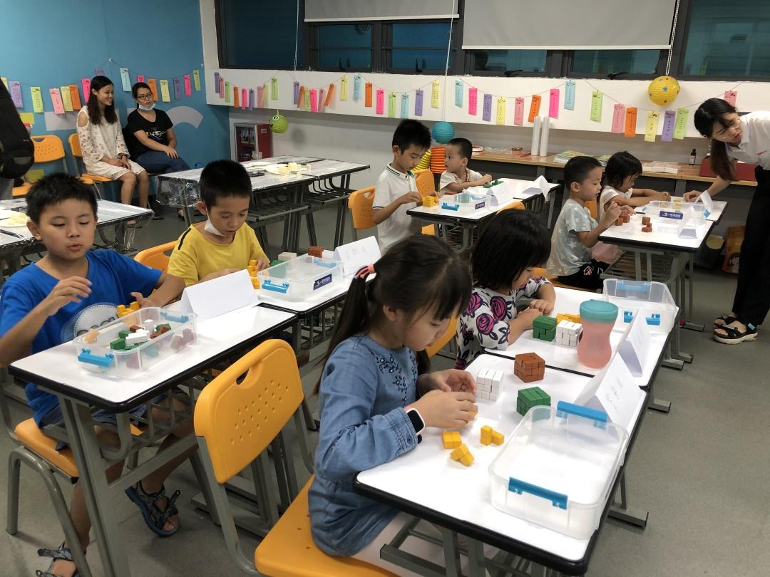 接着老师们带领孩子一起进行了思考星球的索玛立方体挑战游戏。在家长的帮助下,孩子们需要按照主持人的要求完成立方体的拼接挑战。短短的游戏挑战时间内,孩子都全神贯注地进行挑战,除了能收获满满的成就感之外,率先完成的孩子还能获得精美小礼品。