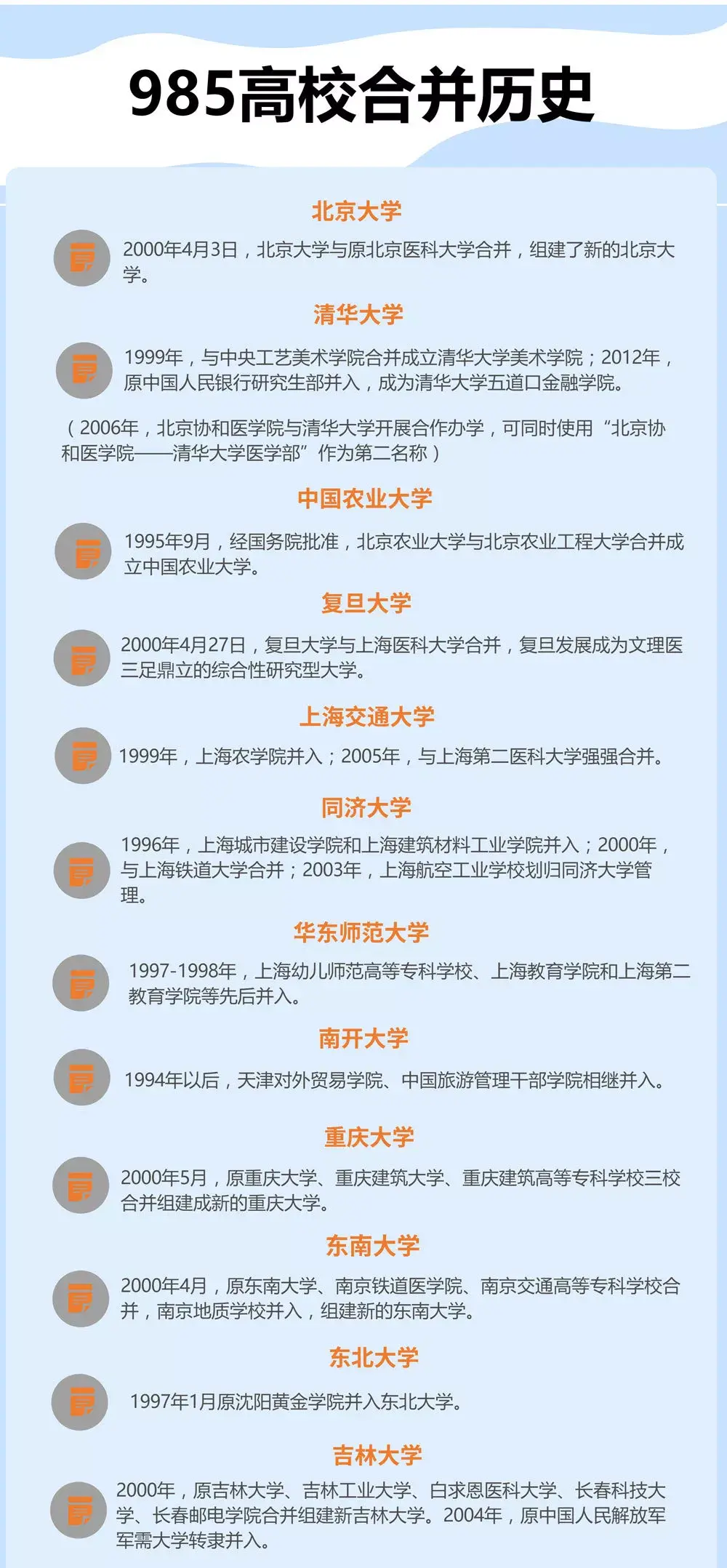 39所985高校里面,只有中国人民大学、北京师范大学、北京理工大学、中央民族大学、北京航空航天大学等13所高校没有合并过,其余26所高校都有过合并历史,西北农林科技大学甚至合并了7所高校和科研所。