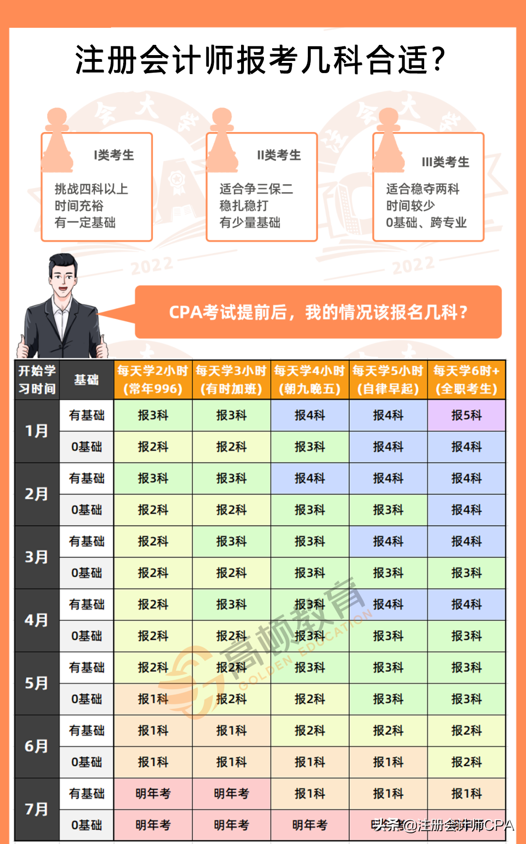 根据自身基础、再结合时间安排等,选择合适报考科目数量!