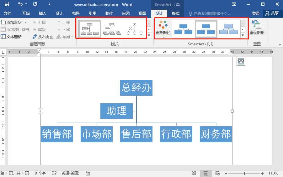 关于用word中SmartArt图形画公司组织结构图的的方法就分享到这里。