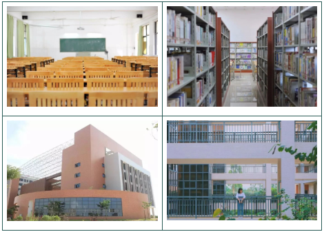 学校现有麻章主校区、赤坎校区、遂溪校区及廉江校区四个校区。其中主校区位于文化氛围浓郁、各类院校云集的湛江教育基地,建成区占地面积498.69亩,另有预留土地近500亩,教学仪器设备总值4000多万元,固定资产总值近9亿元,馆藏纸质图书65万册,建有专业实训室及专用教室153间。
