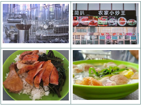 一楼饭堂有自由打饭区、炸鸡、沙县小吃、汤水······