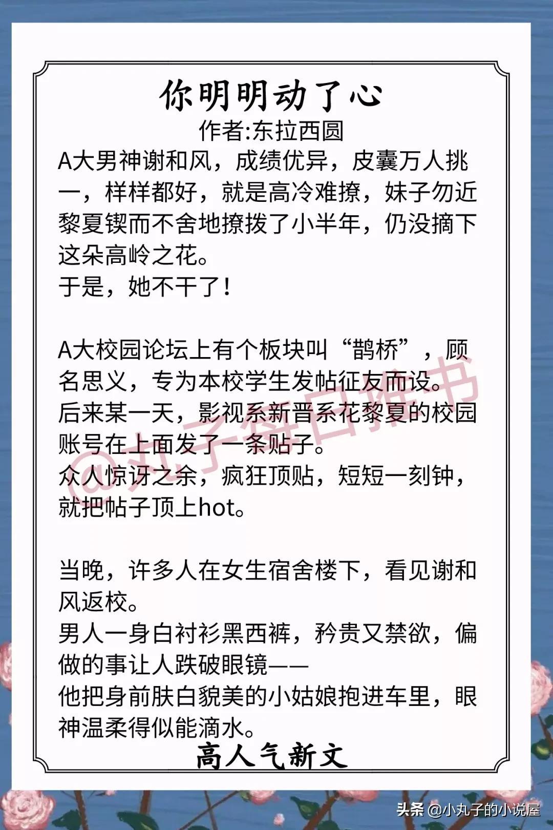 6.《你明明动了心》 作者:东拉西圆(娇俏软萌系花vs高冷学霸男神,女撩男,高岭之花落下神坛,校园甜宠文)