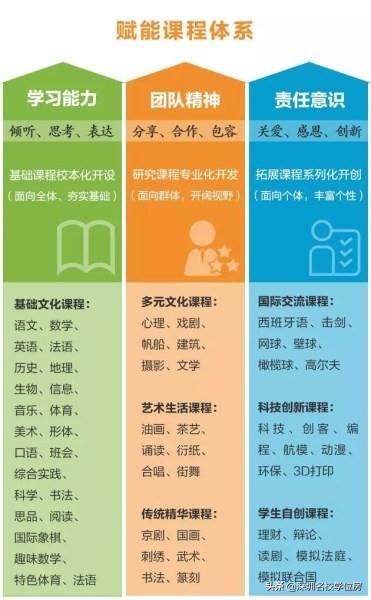 外语特色是深圳外国语学校的立校之本,龙华校区将沿用总校外语特色课程体系,致力于培养学生的学习能力、团队精神、责任意识,以“倾听、思考、表达、分享、合作、包容、关爱、感恩、创新”九大核心素养为重点,给师生赋权增能,构建多元领域、多元层级的“ 赋能课程体系”。