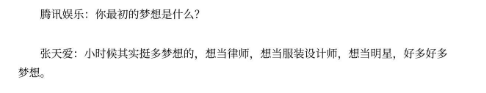 于是,很长一段时间将服装设计师当做一生梦想的张天爱,便通过一次意外的体验,踏上了逐梦娱乐圈的道路。