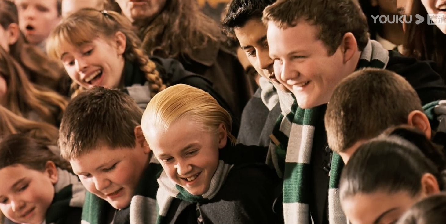 另一个细节是邓布利多鼓掌,其他小朋友被分院,邓布利多都是拍手背,哈利的时候,邓布利多坐直了看,而且听到是格兰芬多的时候,是真·鼓掌,还举杯。