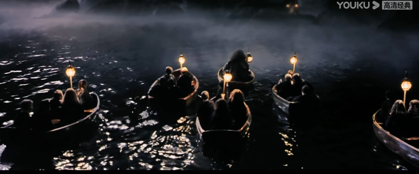 到了霍格沃茨,只有一年级的小朋友是坐船的,其他都是坐夜骐拉的马车,夜骐(一般人看不到,只有见过死人的人能看到)。所以第五部《凤凰社》中,哈利看到了,罗恩和赫敏都看不到,而卢娜也能看到。