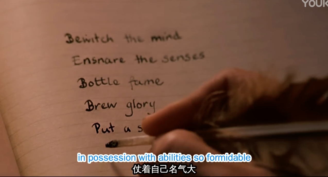 斯内普的魔药课,斯内普介绍魔药课,然后看哈利在那里用羽毛笔写写写,说哈利仗着名气大不认真听讲,然后给格兰芬多扣了分。