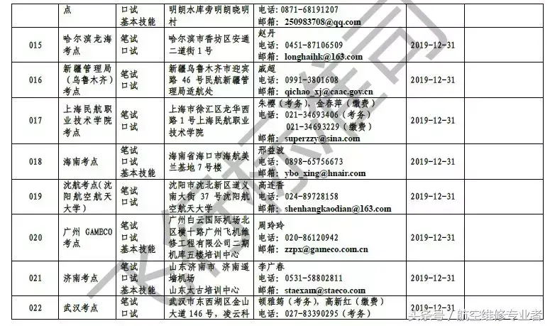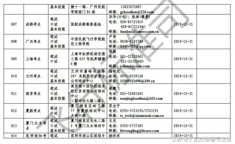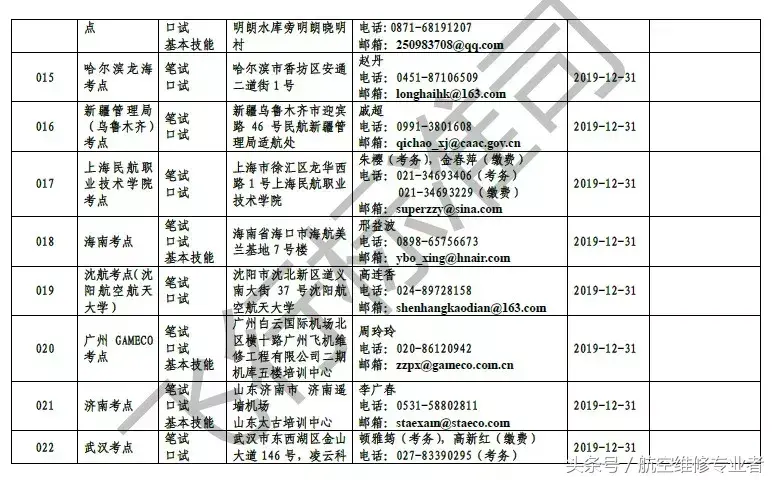 民用航空器维修人员执照考点:经飞标司组织评估通过并根据其批准的考试计划开展CCAR-66部维修人员执照考试的组织机构。