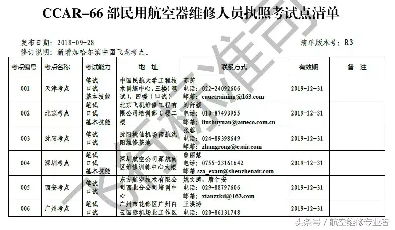 近日,民航维修人员信息平台公布了《维修执照考点清单(R3版)》,截至2018年9月28日,我国民航维修执照考点已达29个。