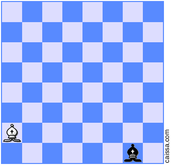 注:开局双方各有两个“主教(象)”,在棋盘上一个占白格,一个占黑格,由于其斜行的走法,最初在白格、黑格的主教便只能在限定在白格、黑格中移动了,因此又被称为“白格象”和“黑格象”。双象俱全时,能够形成火力交叉,形成覆盖面更广的攻击防守范围。
