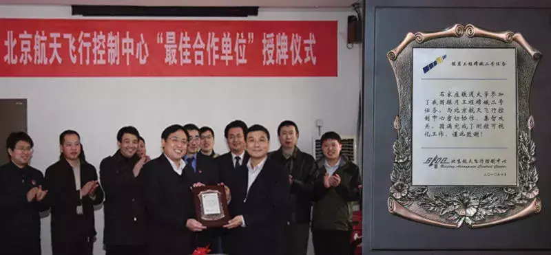 石家庄铁道大学航天可视化团队成功保障了“嫦娥二号”、“嫦娥三号”探月工程任务,“天宫一号”与“神舟八号”、“神舟九号”、“神舟十号”交会对接及“天宫二号”与“神舟十一号”交会对接及后续工程的可视化飞行控制指挥任务,为我国的航天工程提供了技术和保障,做出了巨大的贡献。