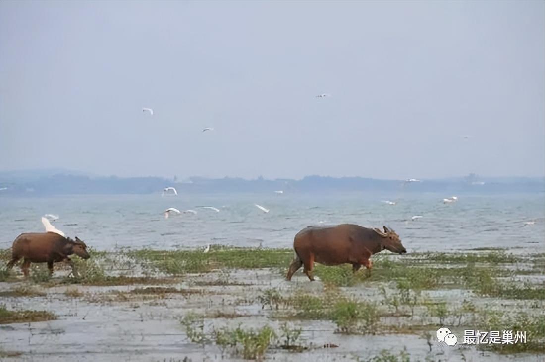 还有一个地方就是巢湖的岸边。那时候巢湖通往长江的裕溪闸好像还没有做好,因此到了秋天,巢湖的水就退下去了,留出来很大一片草坡,少说也有10来个足球场那么大,还有柳树林,这里是玩耍的最好场所。地上长满了碧绿的青草,到处都盛开了各色各样的小花朵,各种彩色的蝴蝶翩翩起舞。我们的工作就是在这里替家里大人放牛,牛在这里悠然地吃着新鲜的嫩草,摇着尾巴,偶尔仰起头:哞——,好像在呼唤远方的朋友。我们只管在这里尽情地玩,玩累了就躺在草地上大睡一觉。只要到了傍晚把牛赶回去就行了。那时的天是那么的蓝,水是那么的清,晚霞是那么的绚丽,有时候烧红半边天。放牛回来,看到村上袅袅的炊烟升起,如诗如画。如果那时能用影像记录下来,现在就是一个自然纪录大片。