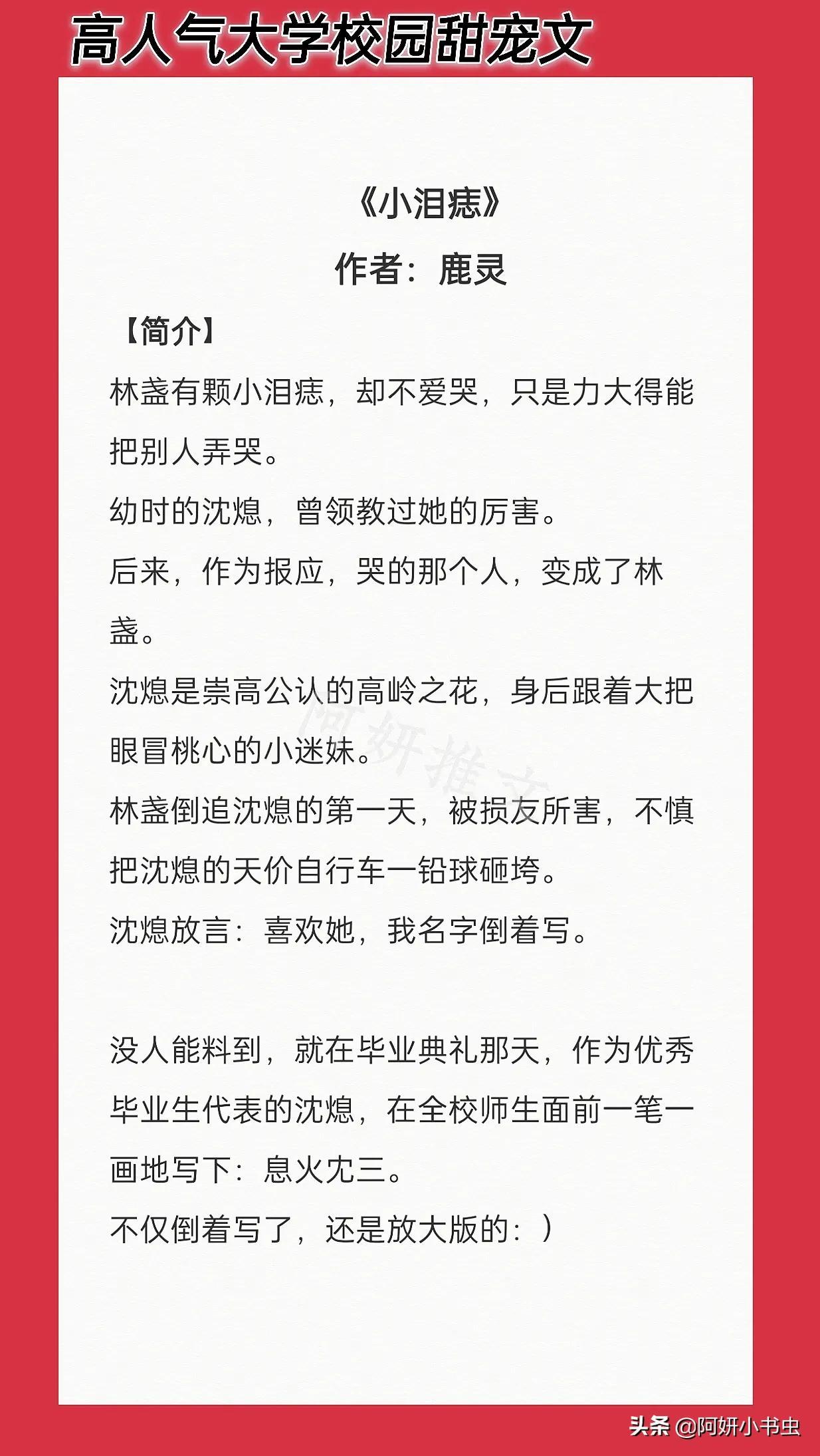 嗨!大家好:我是阿妍,你们的小可爱带着热乎乎的小说文案来了。感谢大家支持与关注!
