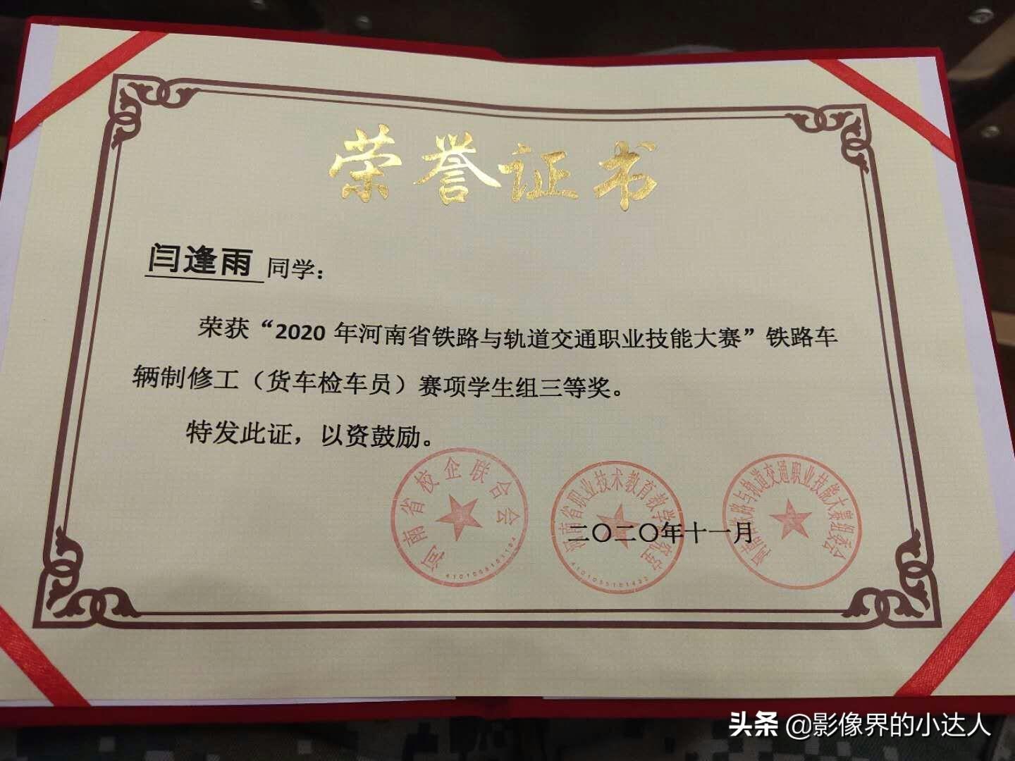 8、2020年河南省铁路与轨道交通职业技能大赛中我院学生朱磊、闫峰雨分别获得一等奖和三等奖。本次比赛有20多个学校及单位参赛,包括轨道,铁路单位职工,高职院校,近300名选手。