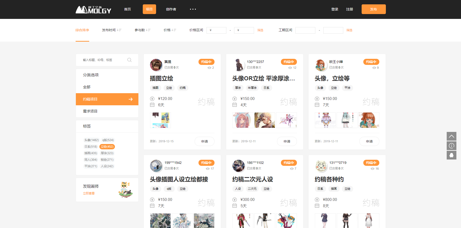这是一个为需求方与自由画师提供插画、漫画在线交易的约稿服务平台。为需求方及自由画师提供流程化、规范化和透明化的约稿服务体系,帮助双方实现利益最大化。注意不要上传练习,临摹,和完成度不足的作品。