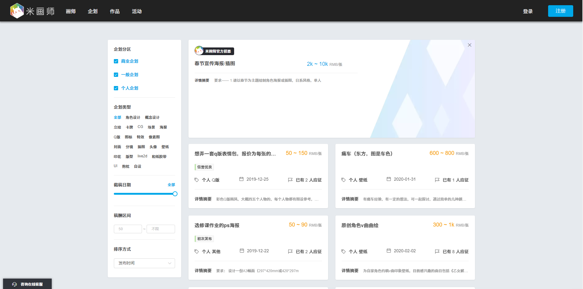 先给大家介绍平台网站,为什么呢,平台有保障些,对于画师而言