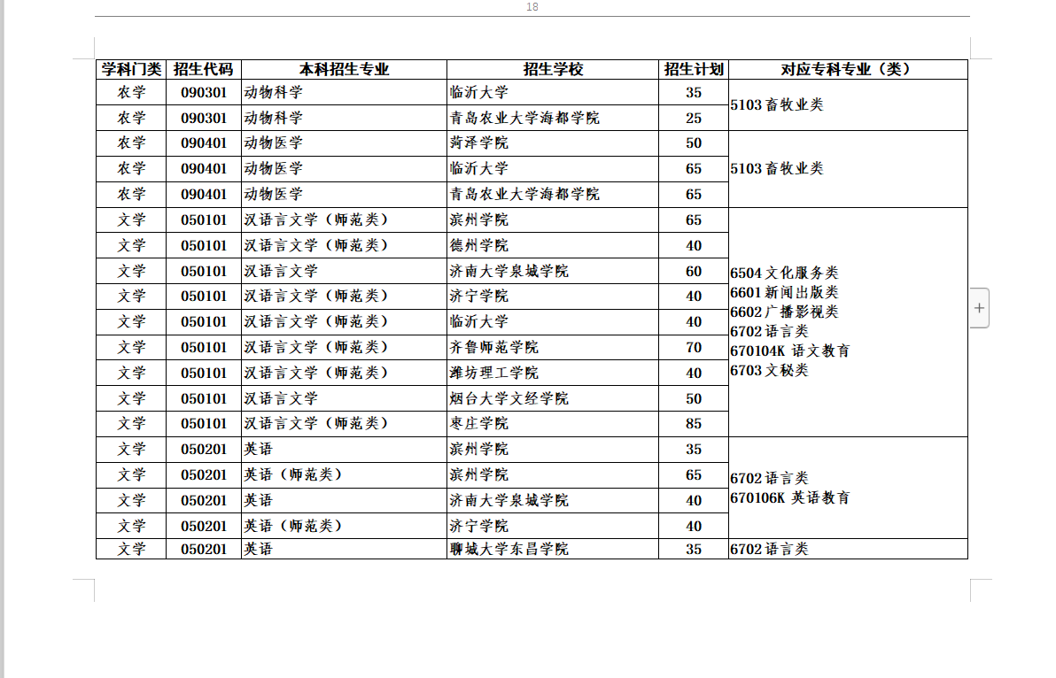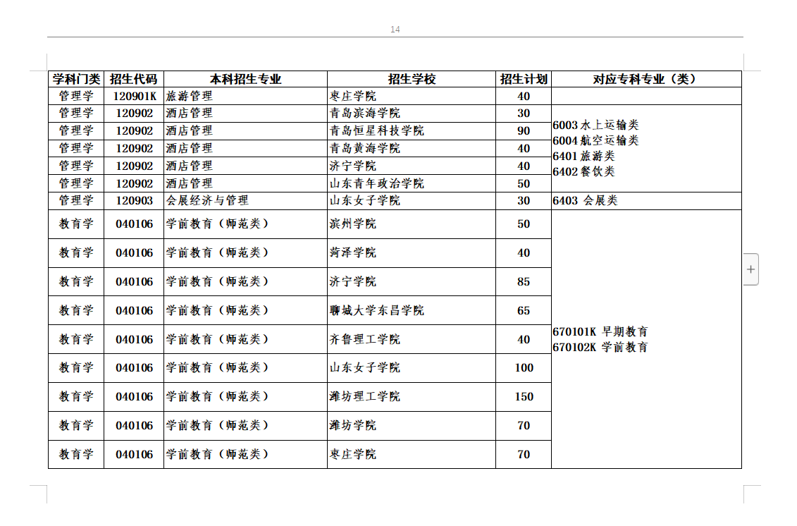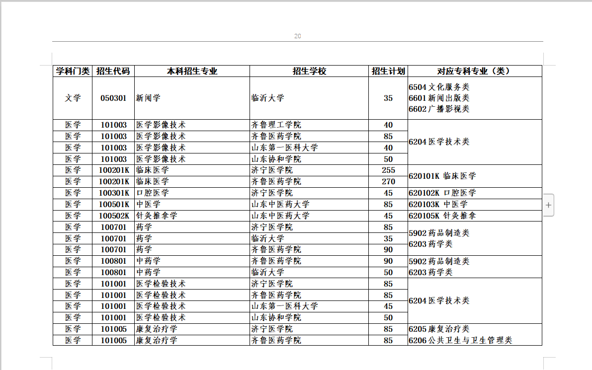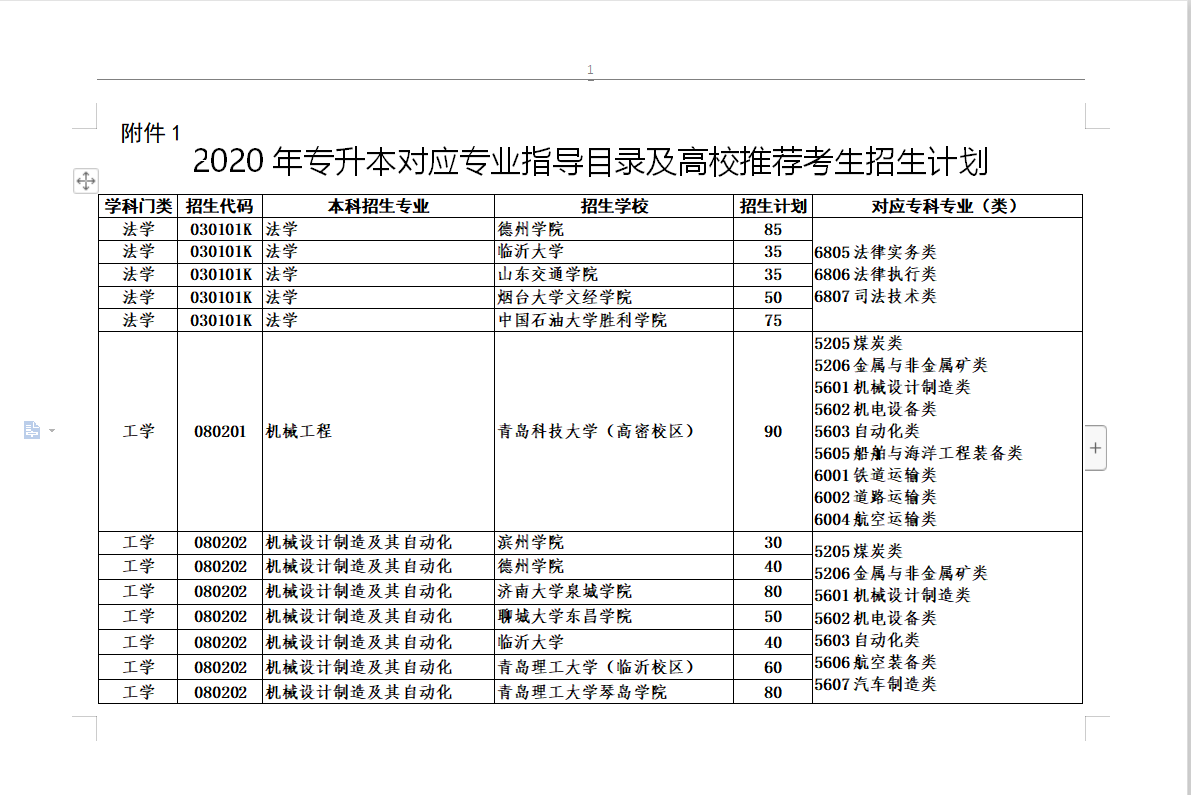2020年专升本对应专业指导目录及高校推荐考生招生计划最全整理(共24页,可放大看)