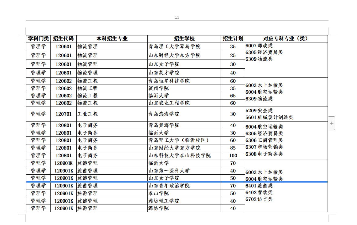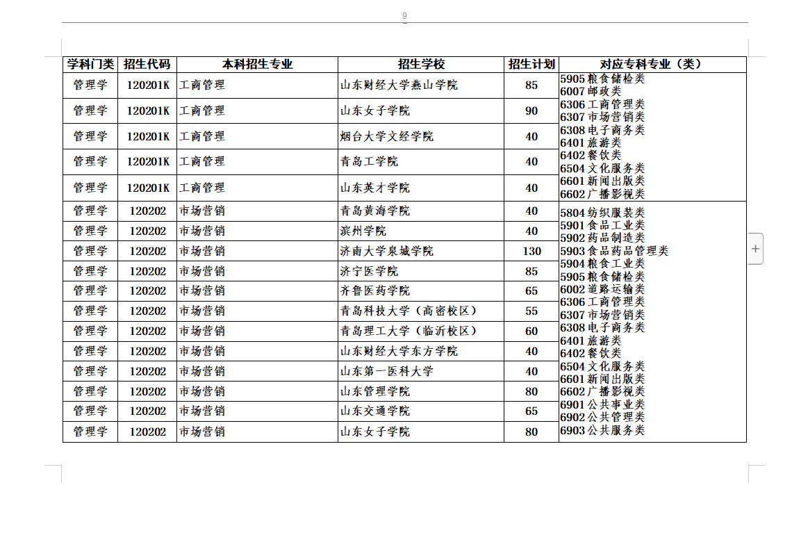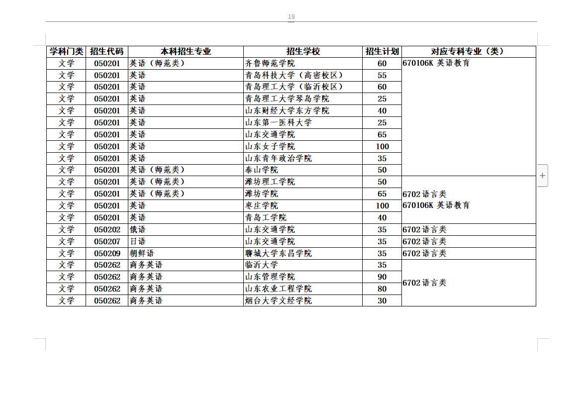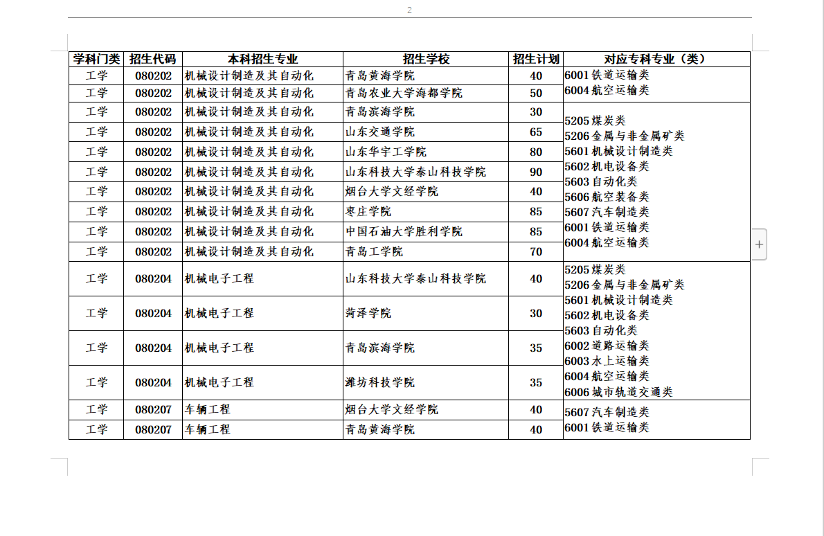 2020年专升本对应专业指导目录及高校推荐考生招生计划最全整理(共24页,可放大看)