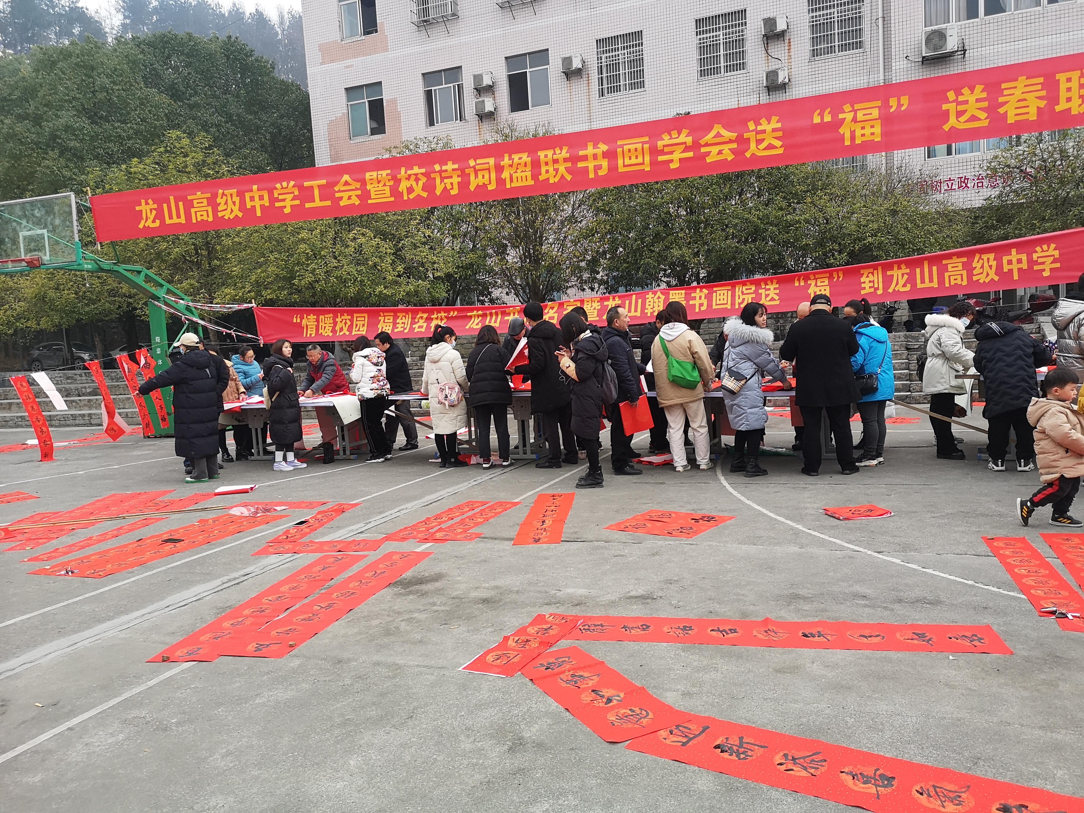“写春联,贴春联”是喜迎中国新年,迎春纳福的传统习俗,象征着吉祥,表达人们对美好生活的向往。为营造喜庆祥和的节日氛围,同时给教职工送上新年的美好祝福,2月2日上午,龙山高级中学于校内篮球场举行迎新春送春联活动。