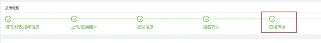 经报名点或考点确认后,“报名确认”节点变为绿色,同时“资格审核”节点变为黑色。