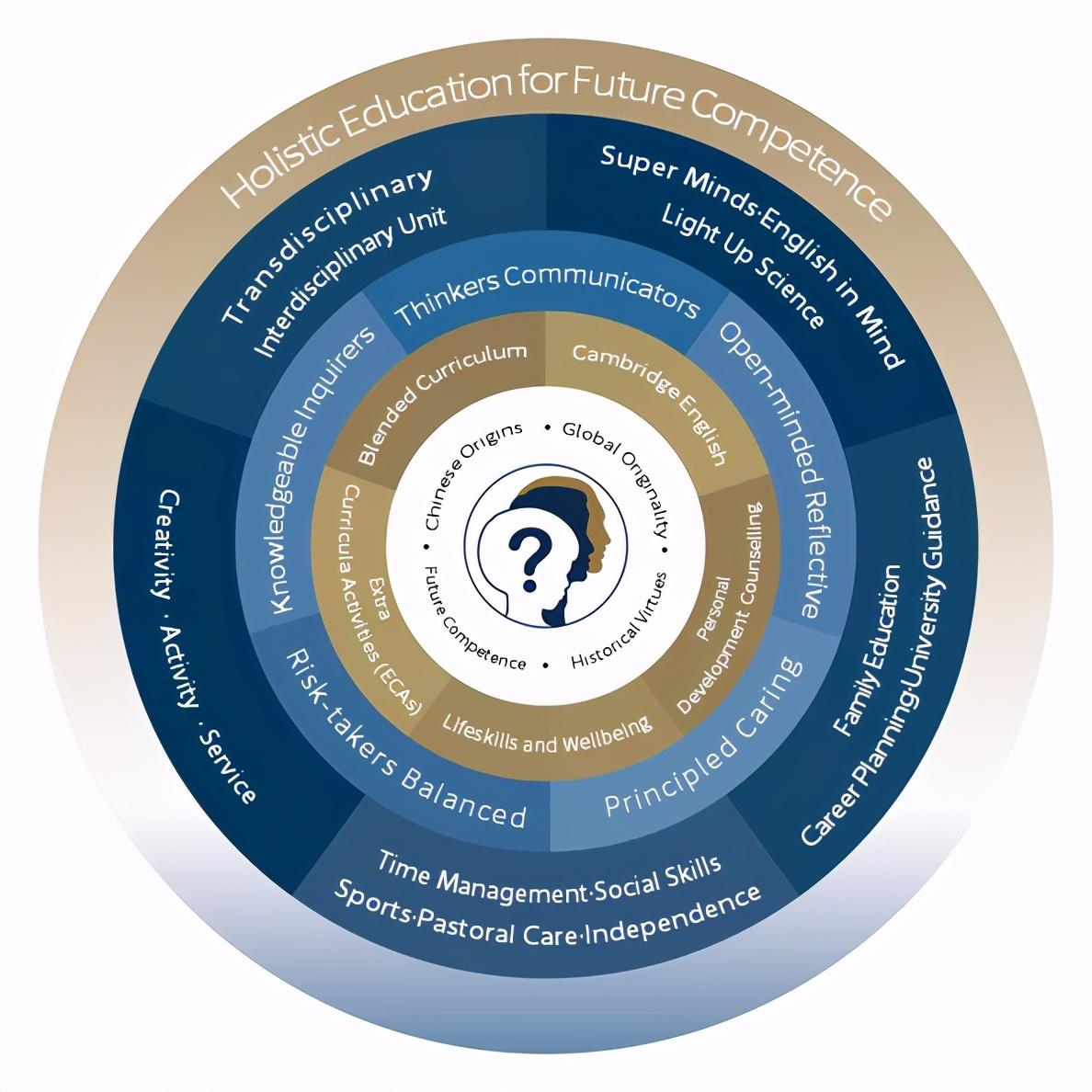 学校秉持 “中西并重、 文理兼长、 全球视野、 幸福成长” 的办学理念,全面实施 “完人教育”,给每一位学生一段终身受益的难忘岁月、 一批人生旅途的良师益友、 一种积极健康的生活方式、 一条适合自身的成长路径。