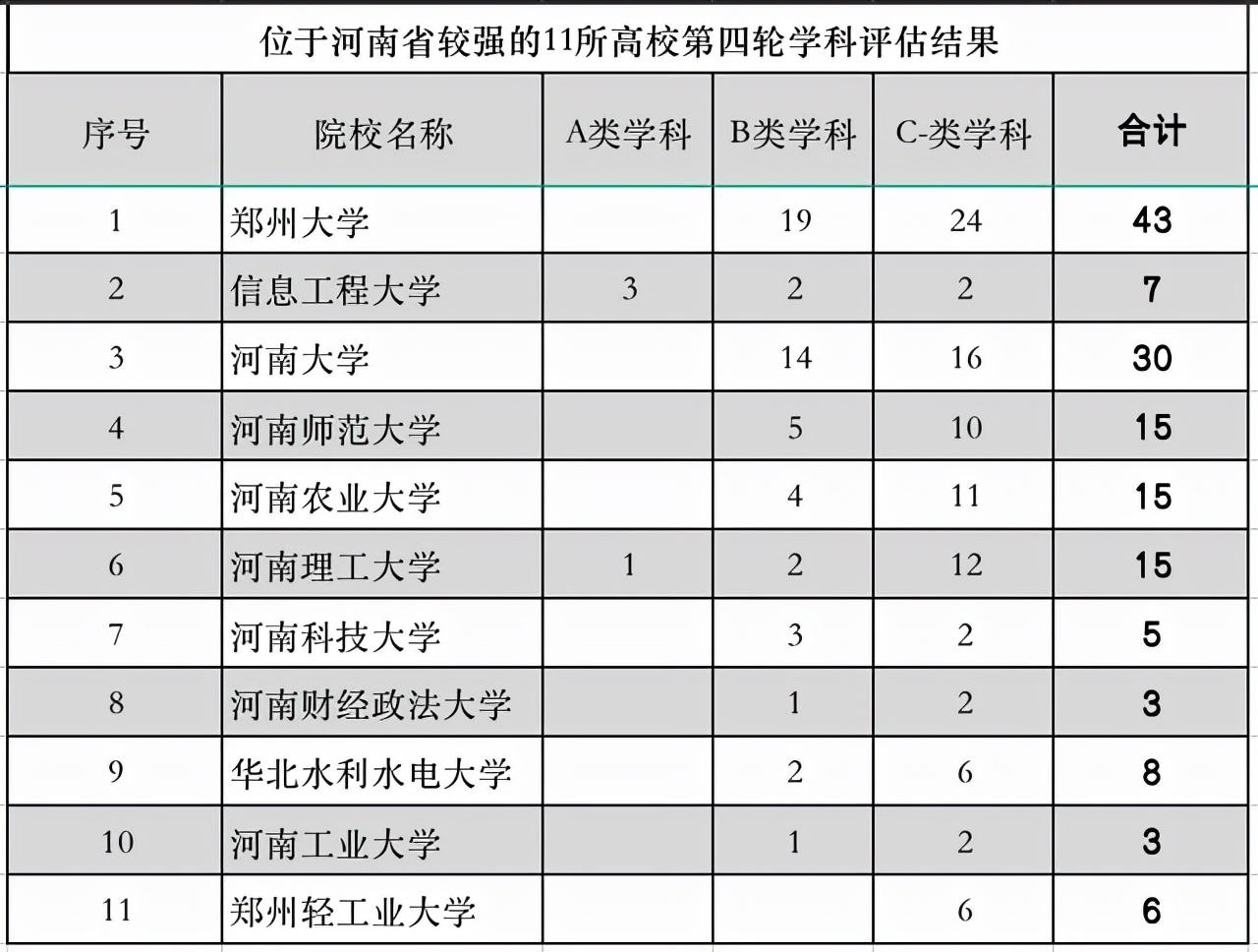 河南省实力较强的11所大学在教育部第四轮学科评估结果: