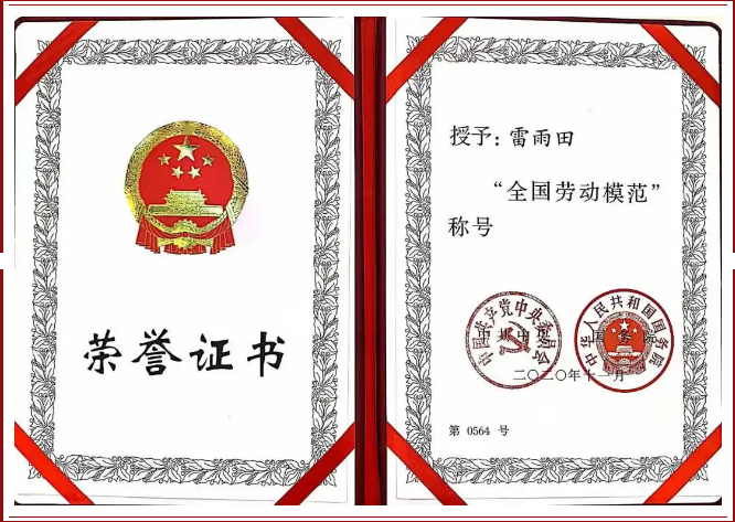 工作中,雷田雨不矜不伐,潜心设计力破堡垒。他采用独创的技术,设计生产的多功能顶枪等关键设备,技术水平达到国际先进,实现整套设备和关键部件的自主研发和生产销售,满足冶炼业现有和未来的需求;为宝联重工实现整套设备和关键部件的研发和生产销售,为我国钢铁企业的产业结构调整提供必要的基础和便利条件,形成了自主知识产权。因为勤勉、敬业,工作不断取得突破,雷雨田从技术员做到技术部部长;从企业优秀员工,到江苏省劳动模范,再到获得"全国五一劳动奖章"及"全国劳动模范"……背后的付出,是三十六小时连轴转只为在现场亲自追踪观察设备的运转情况的耐心;是在条件艰苦的环境下,那颗"路漫漫其修远兮,吾将上下而求索"的决心;是获得褒奖后仍不骄不躁,"非淡泊无以明志,非宁静无以致远"的恒心。