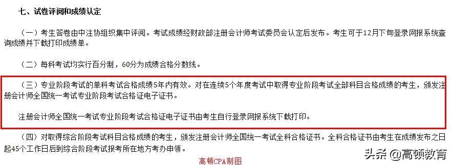 根据中注协的规定,专业阶段考试单科合格成绩保留5年时间,对于在连续滚动5年内通过专业阶段所有科目的考生,颁发注册会计师考试专业阶段合格证书。