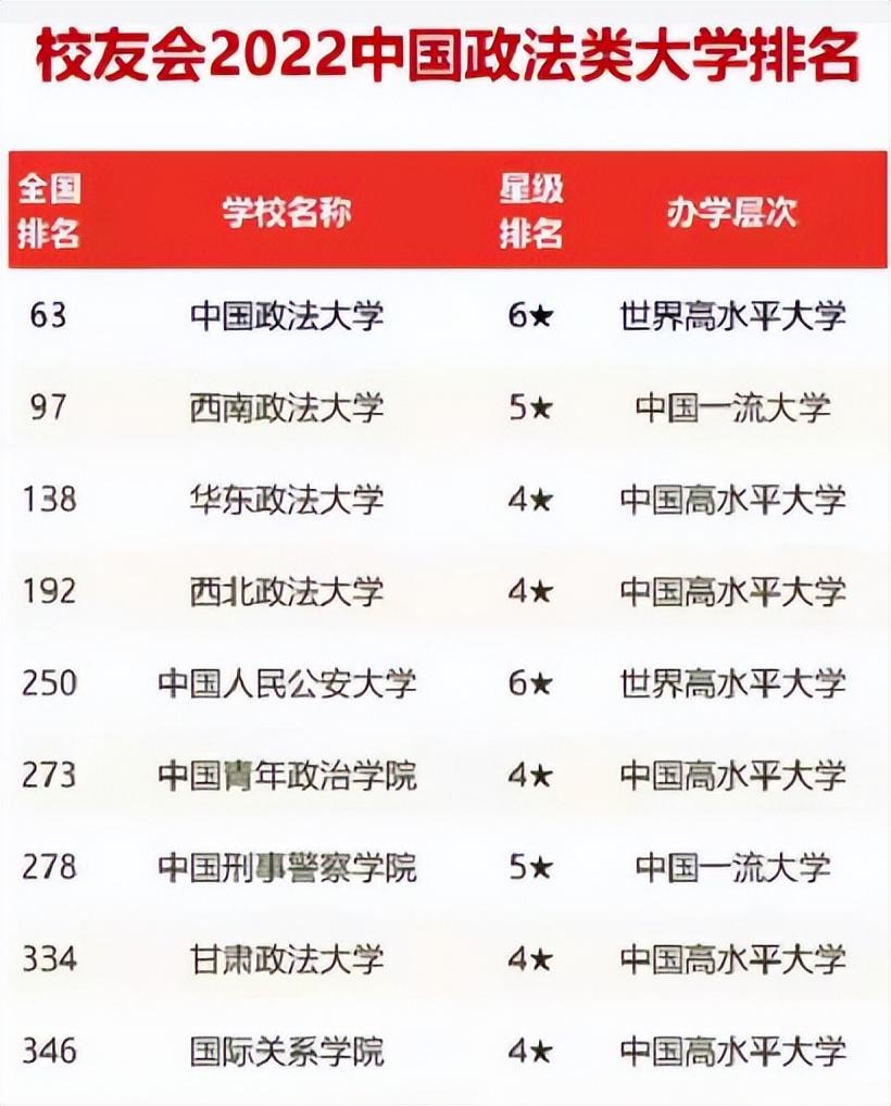 写在最后:政法类高校榜单出炉,西南政法大学表现亮眼,法大稳坐第一把交椅,看着排名还是很令人欣慰的,因为我国的高校发展的真的越来越好了,希望我国的教育事业蒸蒸日上,也希望,更高效能为社会输送更多的人才。