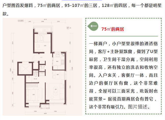 项目的限均价6.6万/平,作为大盘的首期,开盘很可能会有优惠,可以期待一下,很有性价比… 尤其75平的两居做到了普宅,最低首付160W起~