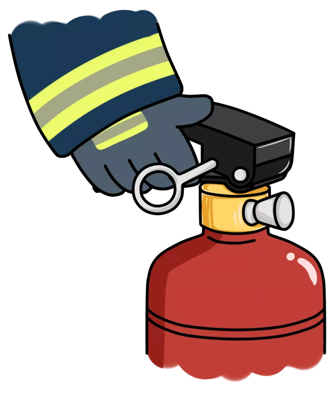 另一只手用力压下压把,干粉便会从喷嘴喷射出来