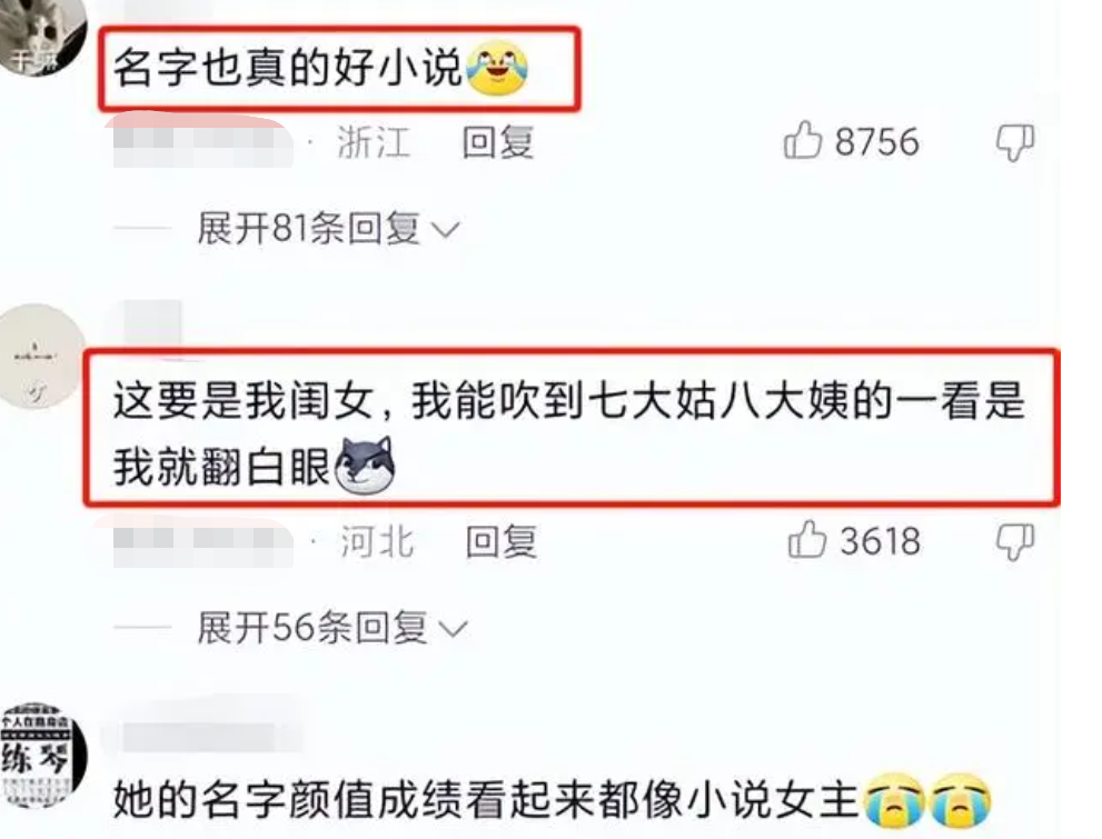 这位来自江苏某所高中的女生,就被人们称为“偶像剧女主”,因为这名女高中生六门功课第一,霸榜”学校光荣榜,而且看名字就像小说女主。