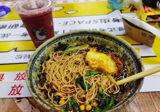 阳光校区一食堂——锦绣阁,装修雅致,拥有舒适的沙发和高雅的窗格,总高三层,涵盖中华各类美食:香喷喷的热干面、辣味十足的旋转小火锅、吃一次就上头的铁板烧、香气四溢的猪脚饭、回味悠长的小锅米线、爽滑酥嫩的肉蛋堡……牢牢抓住了纺大学子的味蕾,让纺大学子留恋忘返。