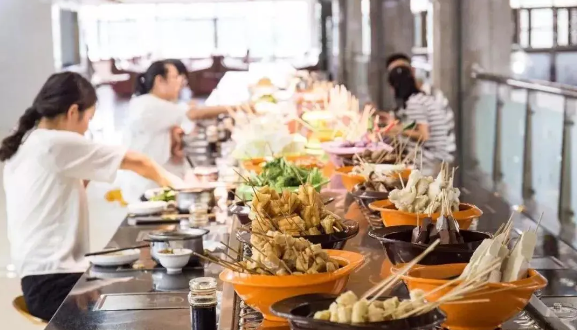 阳光校区二食堂——惟馨阁,靠近校园北门和图书馆,是纺大学子在图书馆奋战之后的首选能量补充点。二食堂共有两层,均安排有自助餐等各类美食,如果你喜欢随性与自由,又有选择困难症,那么这里绝对是你的不二之选。酸甜可口的油焖茄子、外酥里嫩的炸肉、Q弹爽滑的汆丸子、喷香多汁的鸡腿、鲜嫩入味的剁椒鱼……菜品丰富,营养均衡,每一道菜肴都饱含厨师的热情!