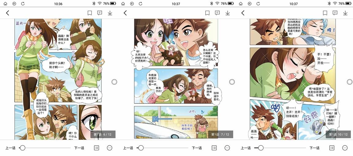 大屏幕的还有一个最大的优势就是看漫画,相信一些漫画迷有福气了,漫画迷都知道,漫画书制作精美,实体书籍价格昂贵。电脑上长时间看漫画虽然是彩色,但是伤害眼睛,我女儿是经常的躲在被子里面拿着手机看漫画。InkPad内置的32G内存,除了能下载足够的漫画打发你无聊的时间和精力了。而且长时间约阅读也不会伤害实力。而且商城还有很多免费的漫画书可以阅读。而且都还是正版漫画哦。