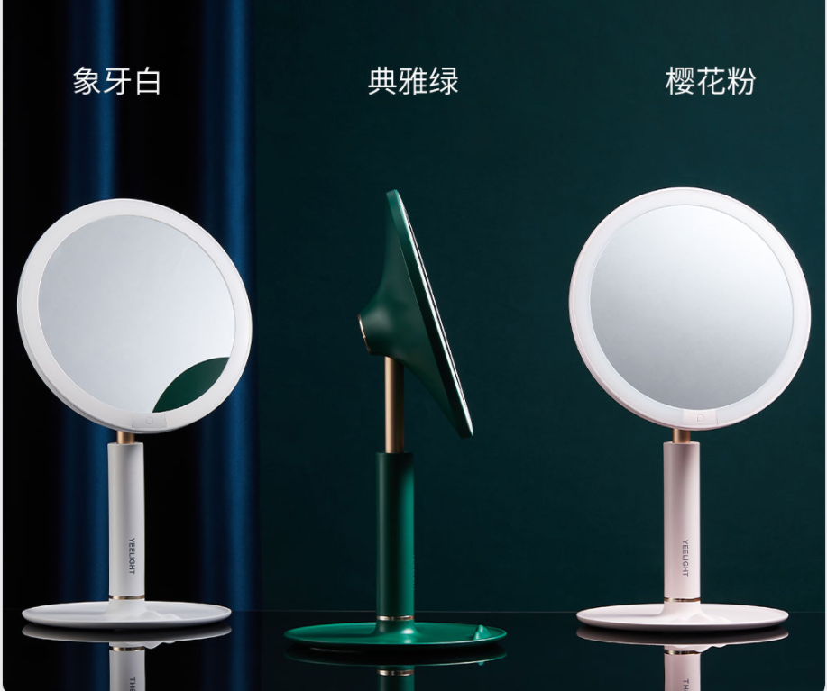 除了象牙白颜色,这款Yeelight轻奢化妆镜还有绿色和粉色款式可以选择。白色的显得比较干净,在卧室使用,也比较搭配现在的家居风格。