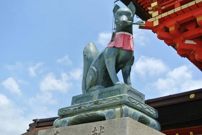 弥子的形象来自于民间传说,白色的狐狸,是稻荷神的使者之一。伏见稻荷大社还有自己独特的“白狐绘马”,足可见狐狸在这里的地位之高。位于日本京都的“伏见稻荷大社”,是所有稻荷神社的总本山,门前就有这样一尊狐狸雕像。