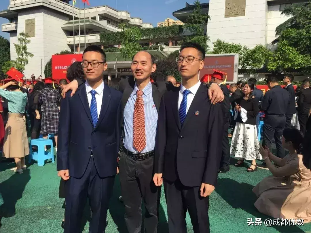 2019年高考:四川省状元张家杰(左)、双胞胎哥哥张家豪(右)和班主任彭长江老师